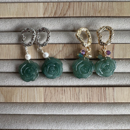 Jadeite Rose Earring Studs