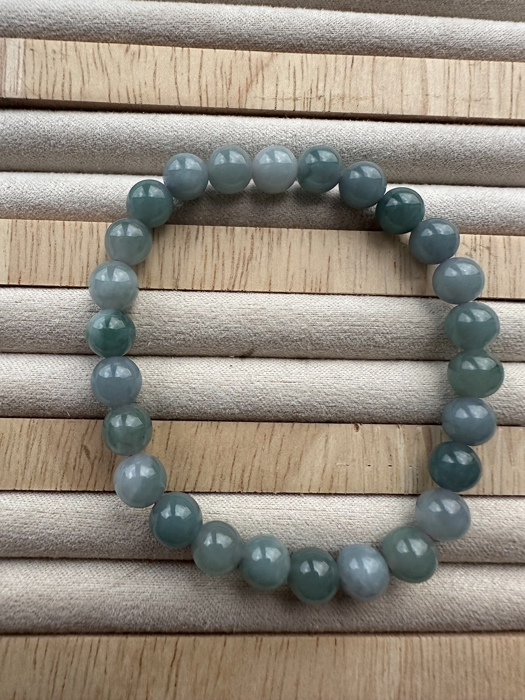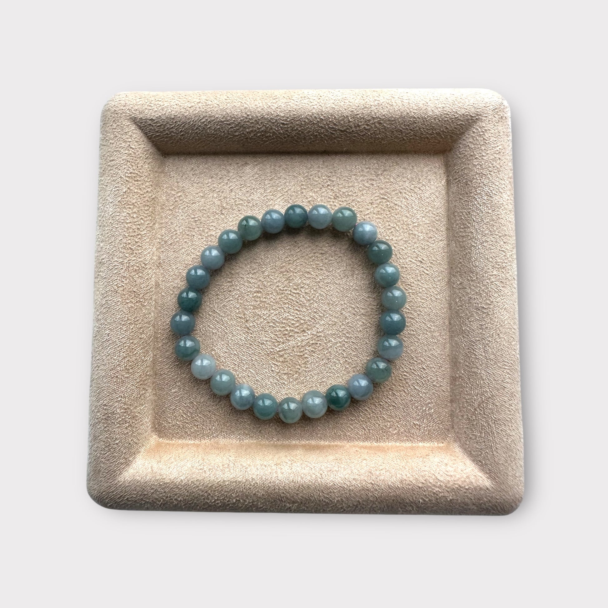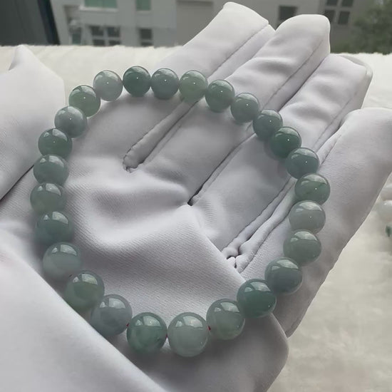 Elegant and calming, this bracelet features natural blue jadeite beads known for their tranquil, ocean-like tones. A versatile piece that complements any style, this jadeite bracelet brings a gentle touch of peace and balance to your everyday wear.