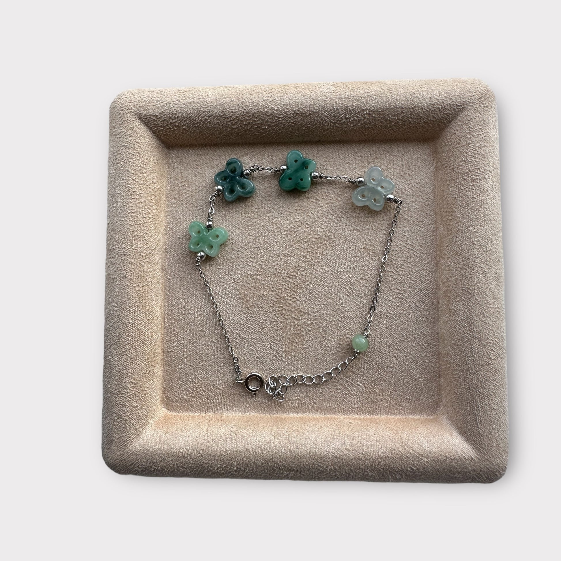 A symbol of renewal and beauty, this bracelet perfectly blends the purity of white jadeite with the vitality of green jadeite. Each piece reflects natural harmony, while the butterfly charm adds a graceful touch — representing transformation and hope.