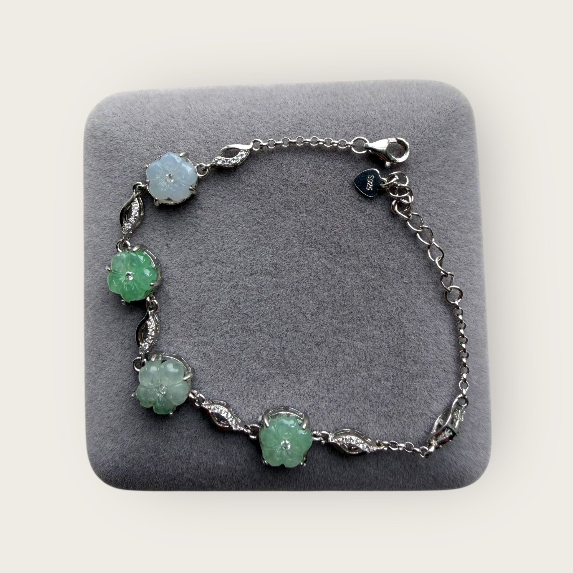 Delicate and timeless, it captures the natural beauty of jadeite with a touch of floral elegance. Each piece radiates subtle color and smooth luster, creating a harmonious piece that’s perfect for everyday wear or special occasions. Light, versatile, and effortlessly graceful, it brings a sense of serenity and refined charm to any outfit.