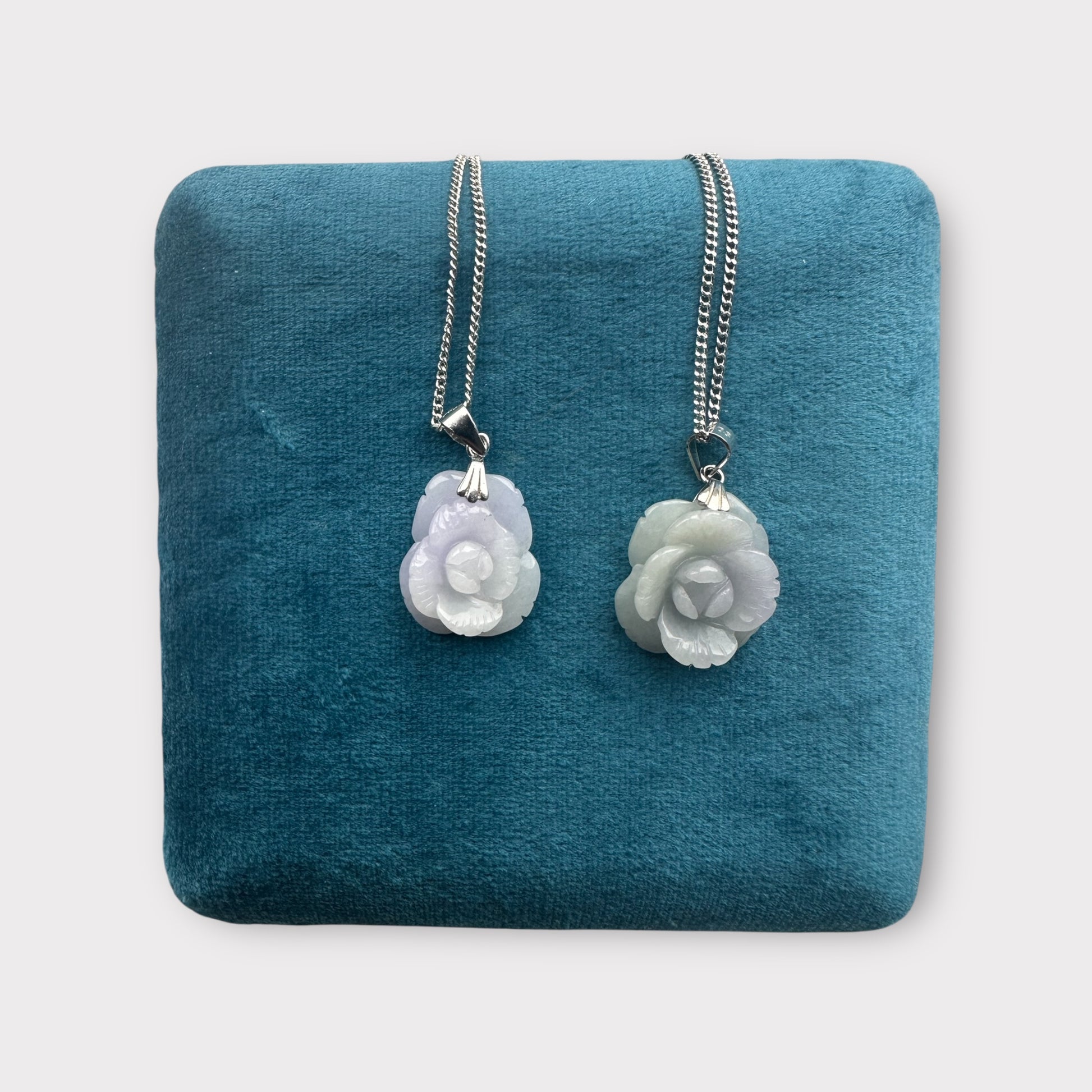 Delicate and dreamy, it captures the gentle beauty of nature in bloom. Featuring a finely carved jadeite flower in soft lavender tones, it symbolizes grace, renewal, and feminine elegance.