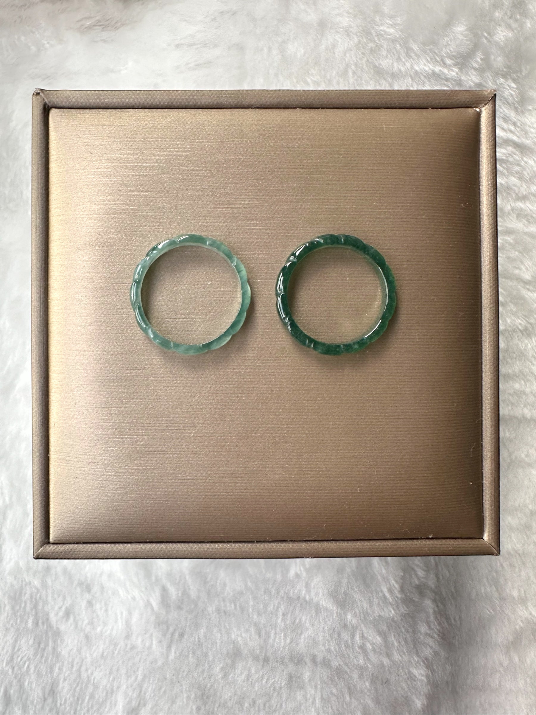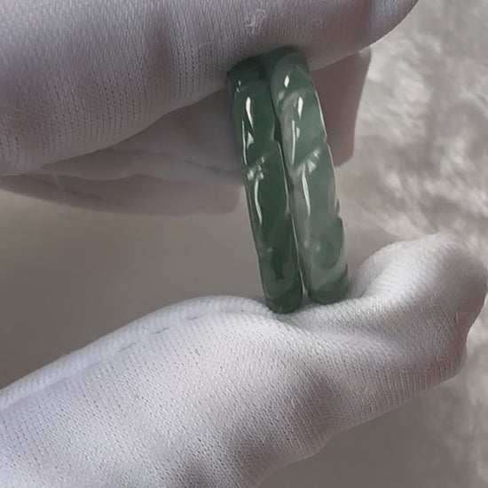Features natural jadeite with captivating blue-green tones and gentle pleated detailing. Elegant and unique, it adds a touch of refined charm to your everyday style.