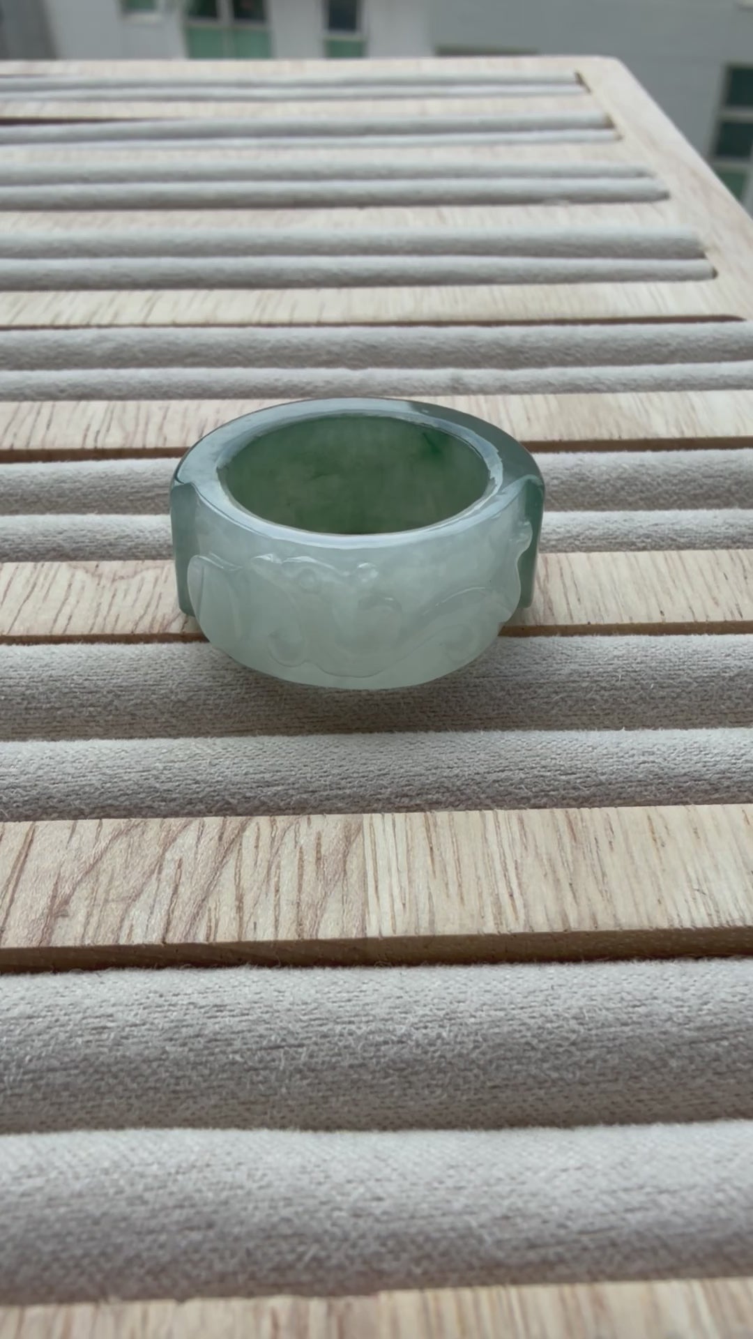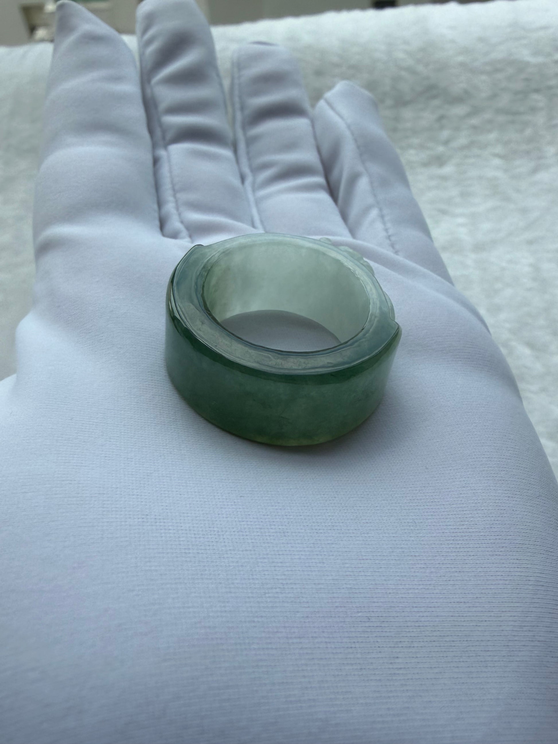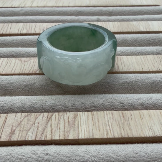 A bold and timeless statement piece — this thick jadeite carved ring showcases intricate craftsmanship and the natural beauty of jadeite. Its smooth, weighty band exudes strength and elegance, perfect for everyday wear or as a meaningful symbol of harmony and protection 💚