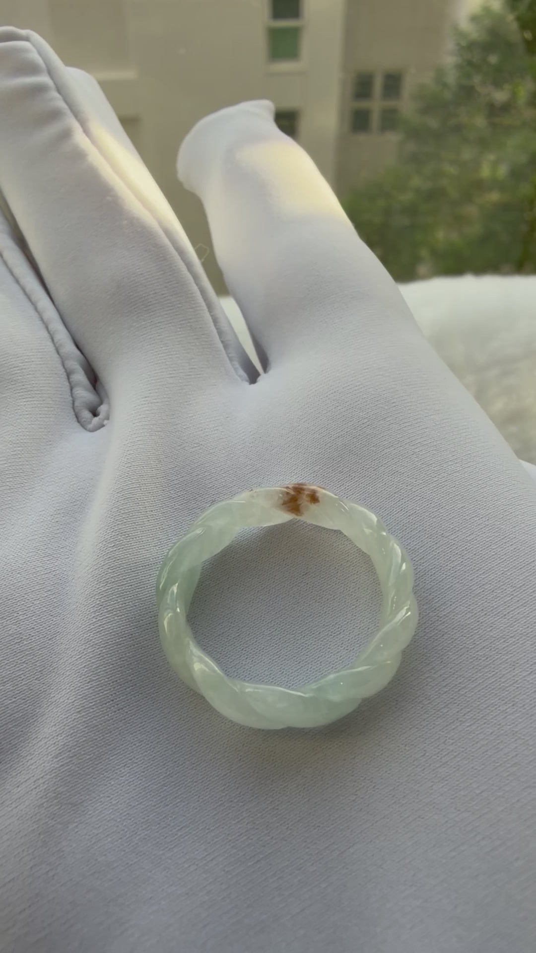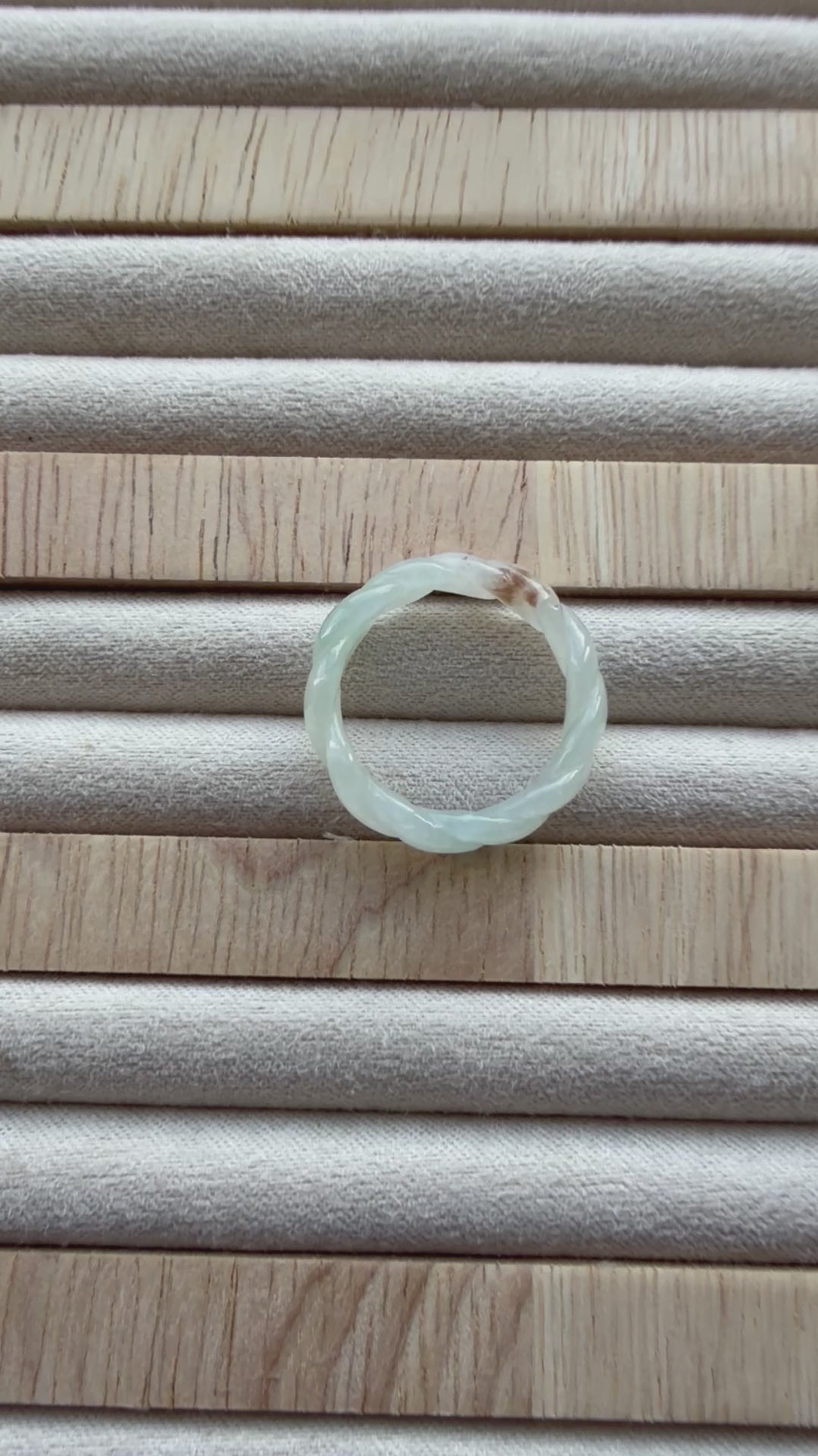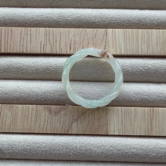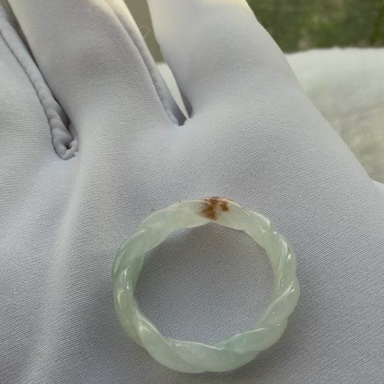 A unique ring showcasing gentle pleats that highlight the stone’s natural texture and vibrant green hue. Elegant yet contemporary, it’s a distinctive jadeite piece perfect for everyday wear or special occasions. It carries sajin, which means naturally formed gold specks like glitter from mother earth💚