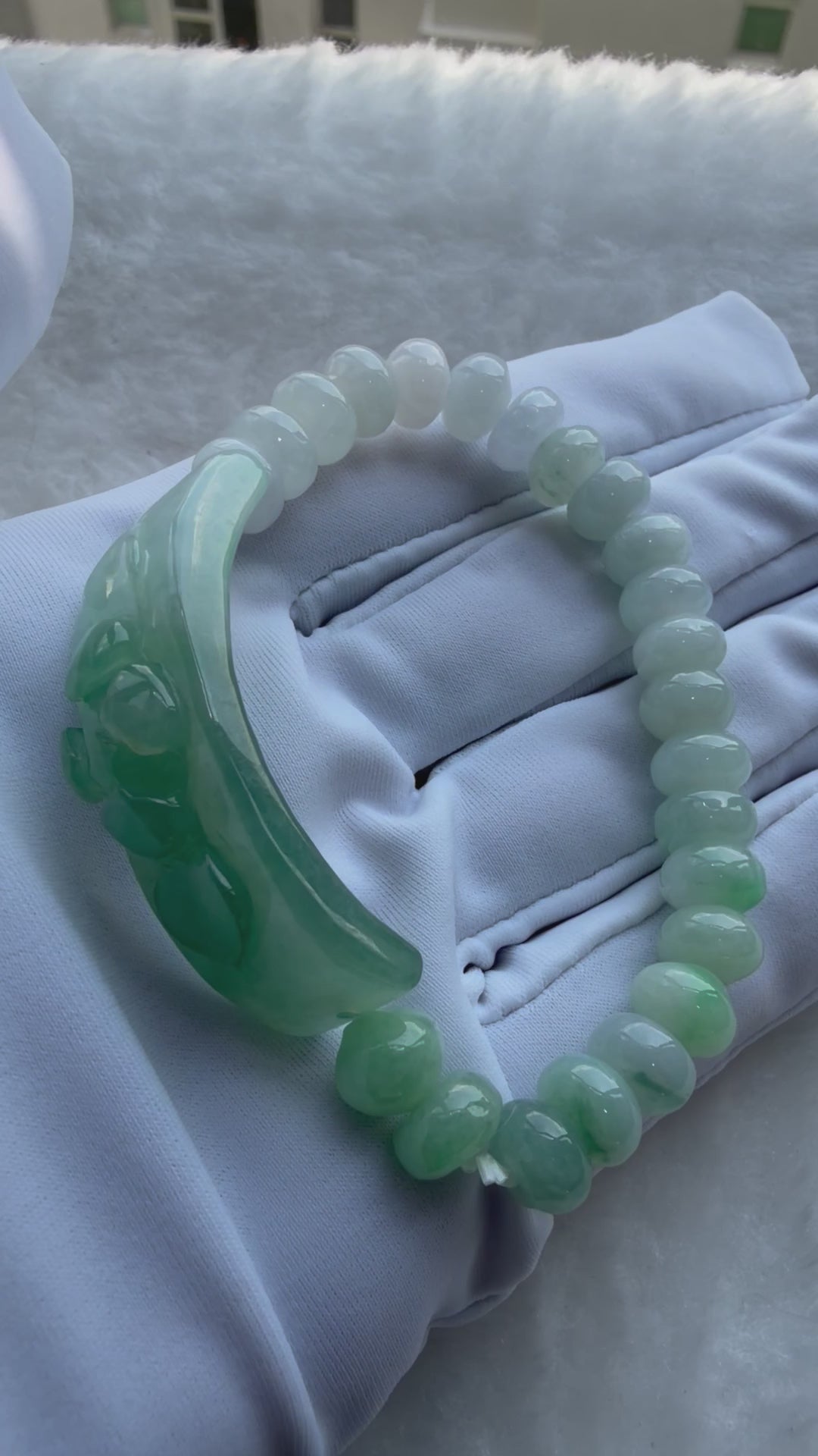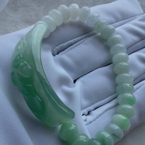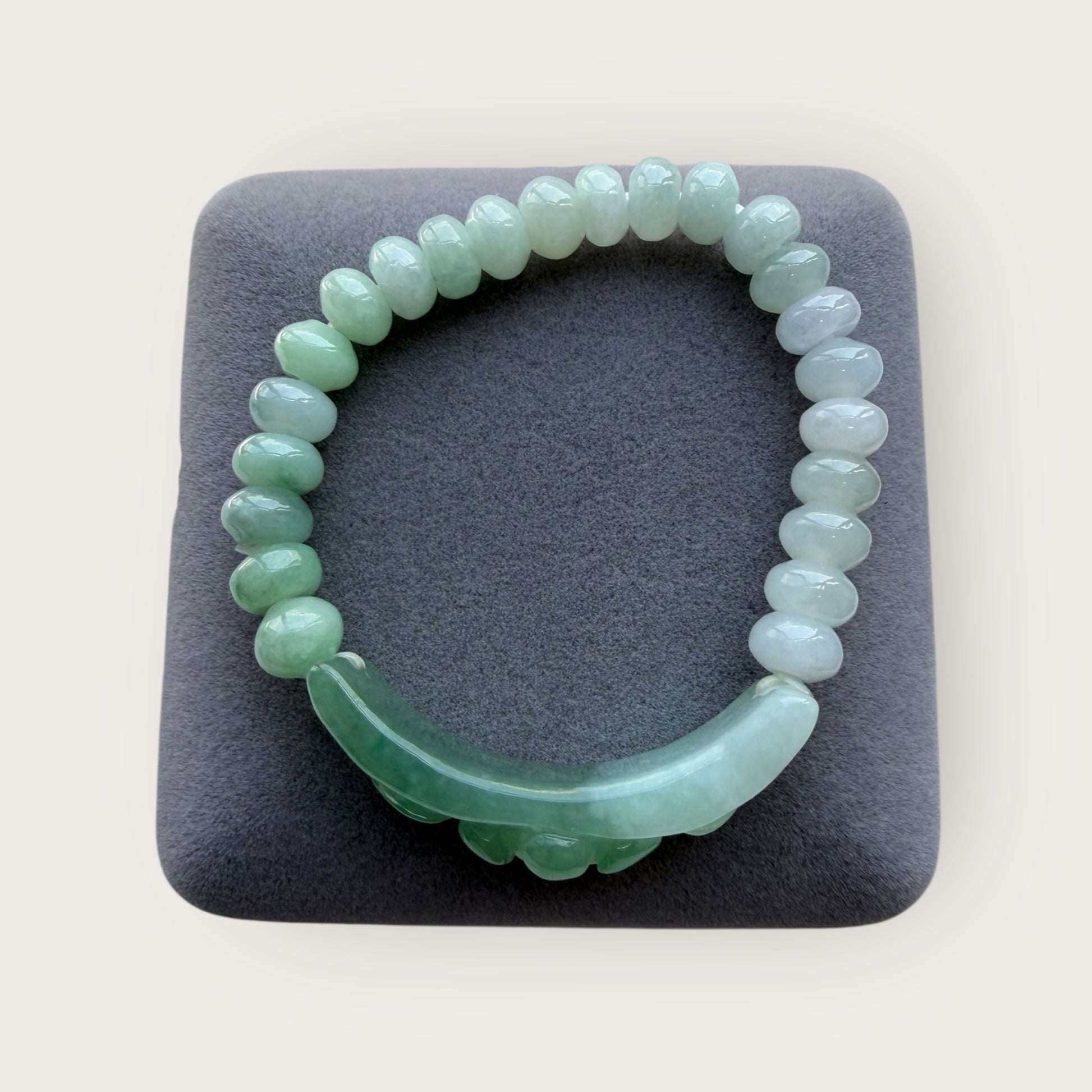 Green White Lotus Jadeite Shoupai Bead Bracelet