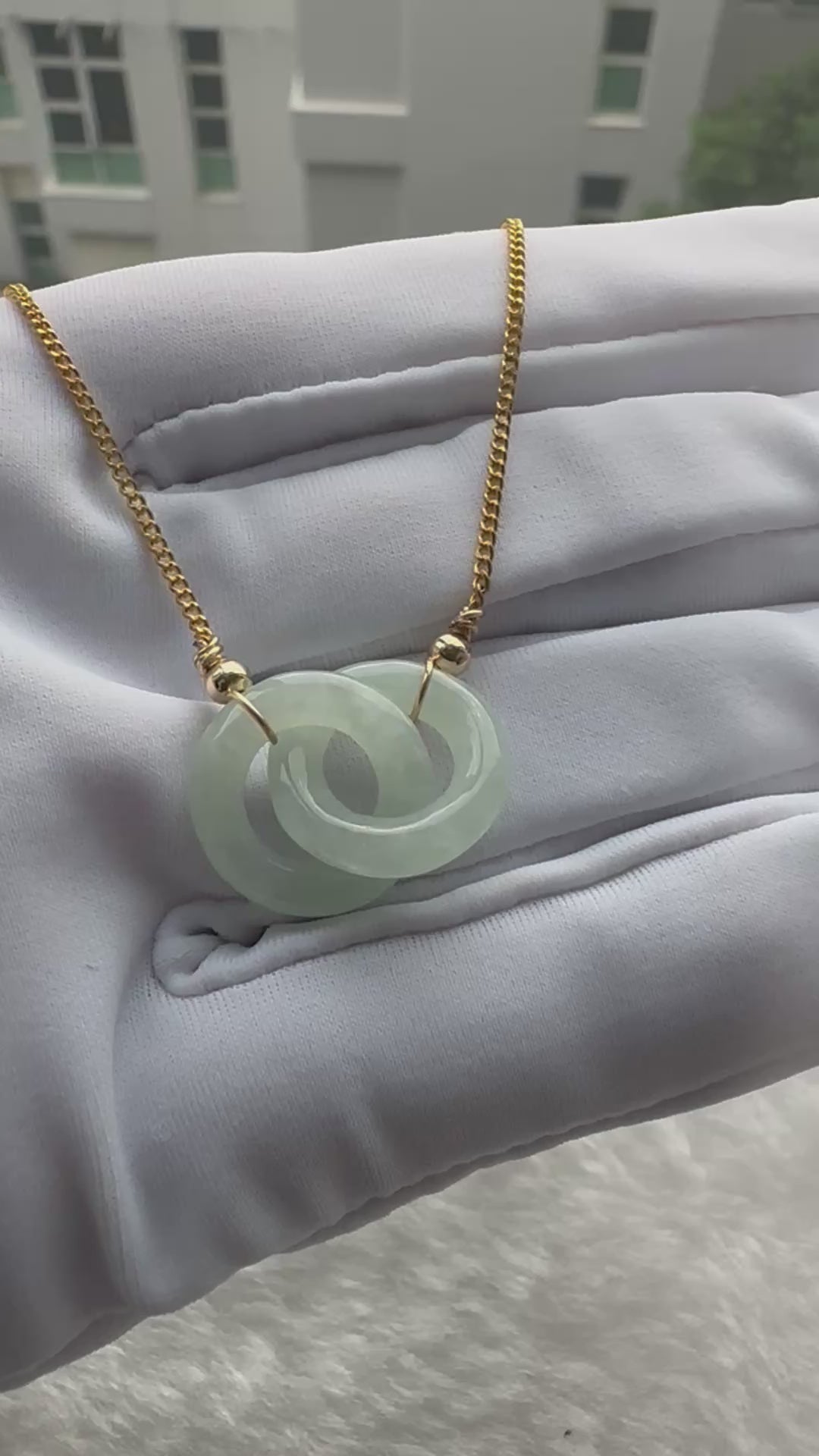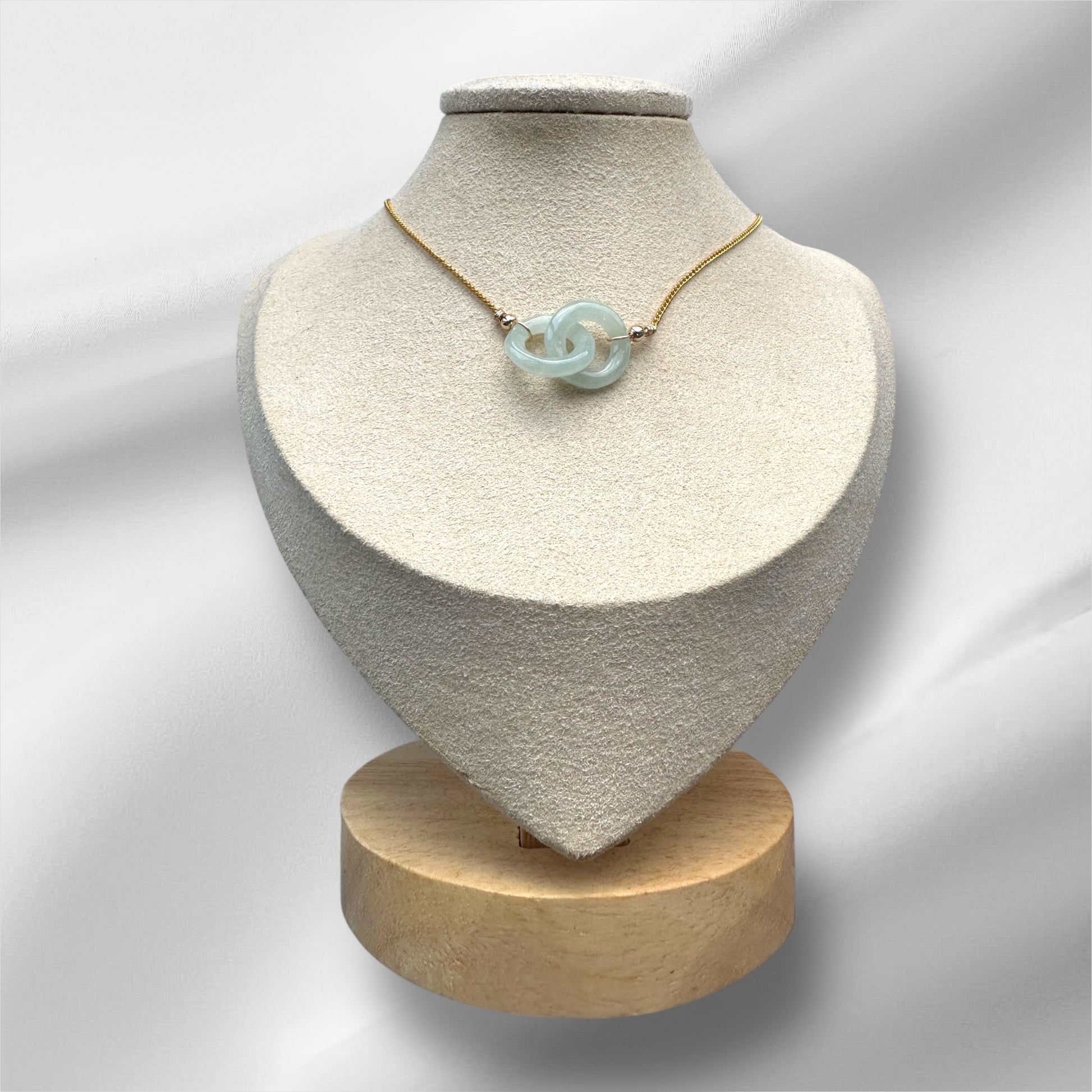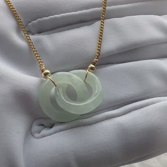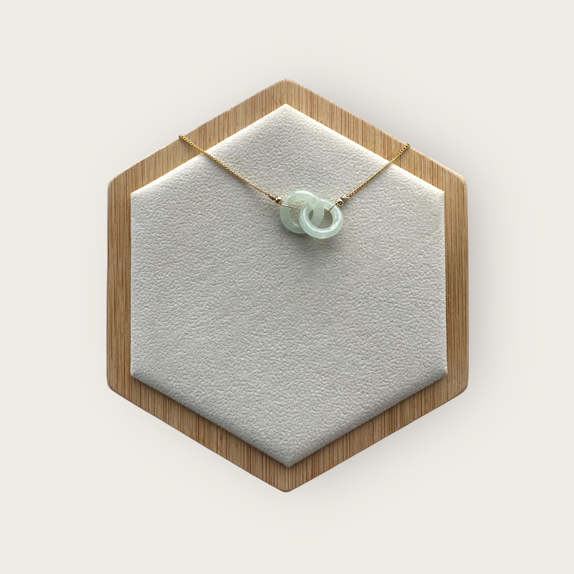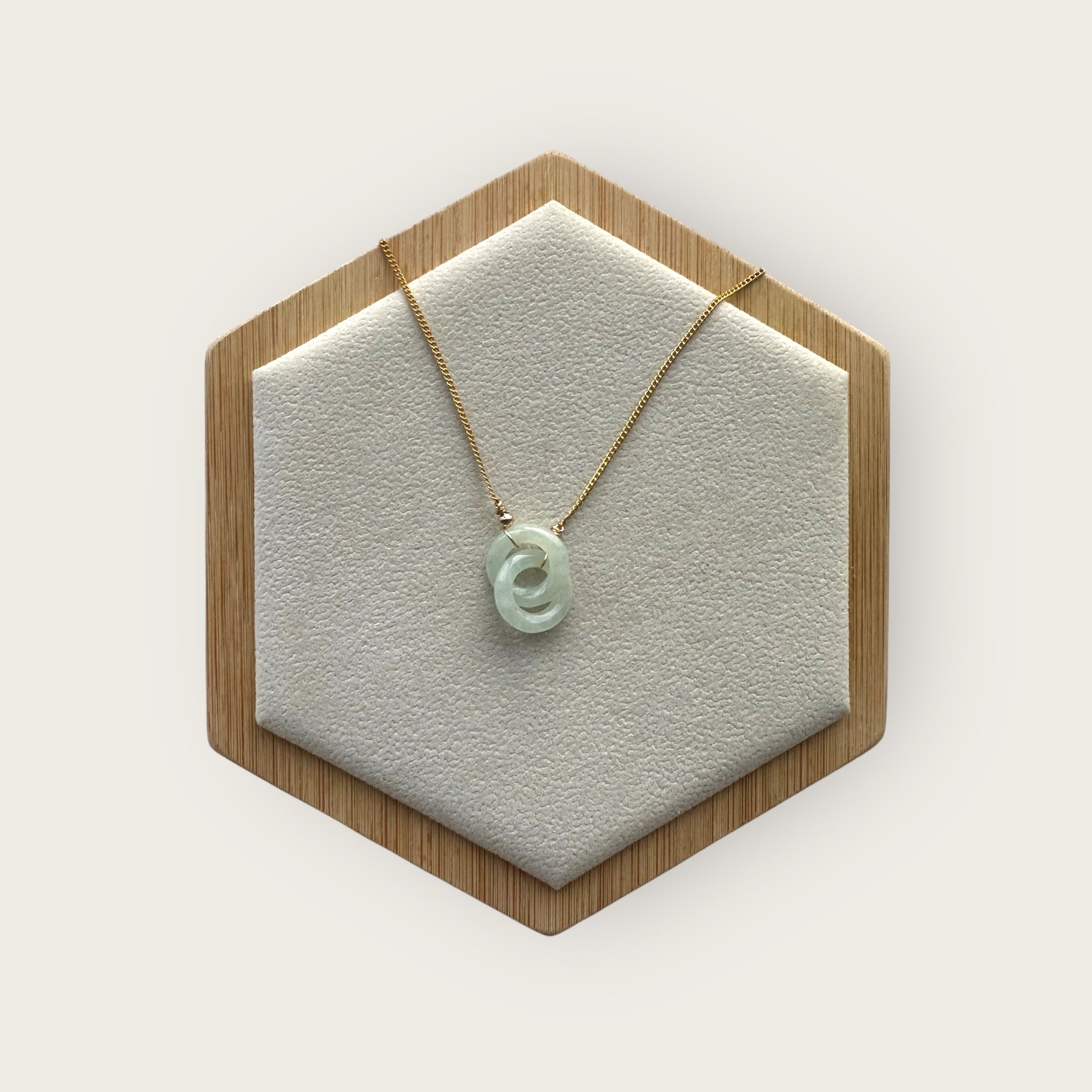 A symbol of unity and strength, this necklace features two interlocked jadeite hooks beautifully carved in a vibrant green hue. The twin hooks represent connection, loyalty, and enduring bonds — making it a meaningful piece for partnerships, friendships, or self-empowerment.