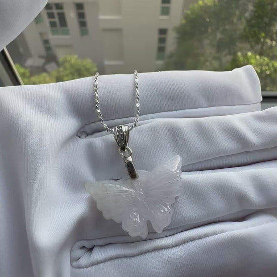 Delicately carved into the graceful form of a butterfly, this pendant features pale lavender jadeite, a stone cherished for its calming and soothing energy. The soft lavender hue symbolizes serenity, transformation, and gentle beauty—just like the butterfly itself, a timeless emblem of hope and renewal. Elegant yet meaningful, this pendant is perfect for everyday wear or as a thoughtful gift carrying blessings of peace and positive change.