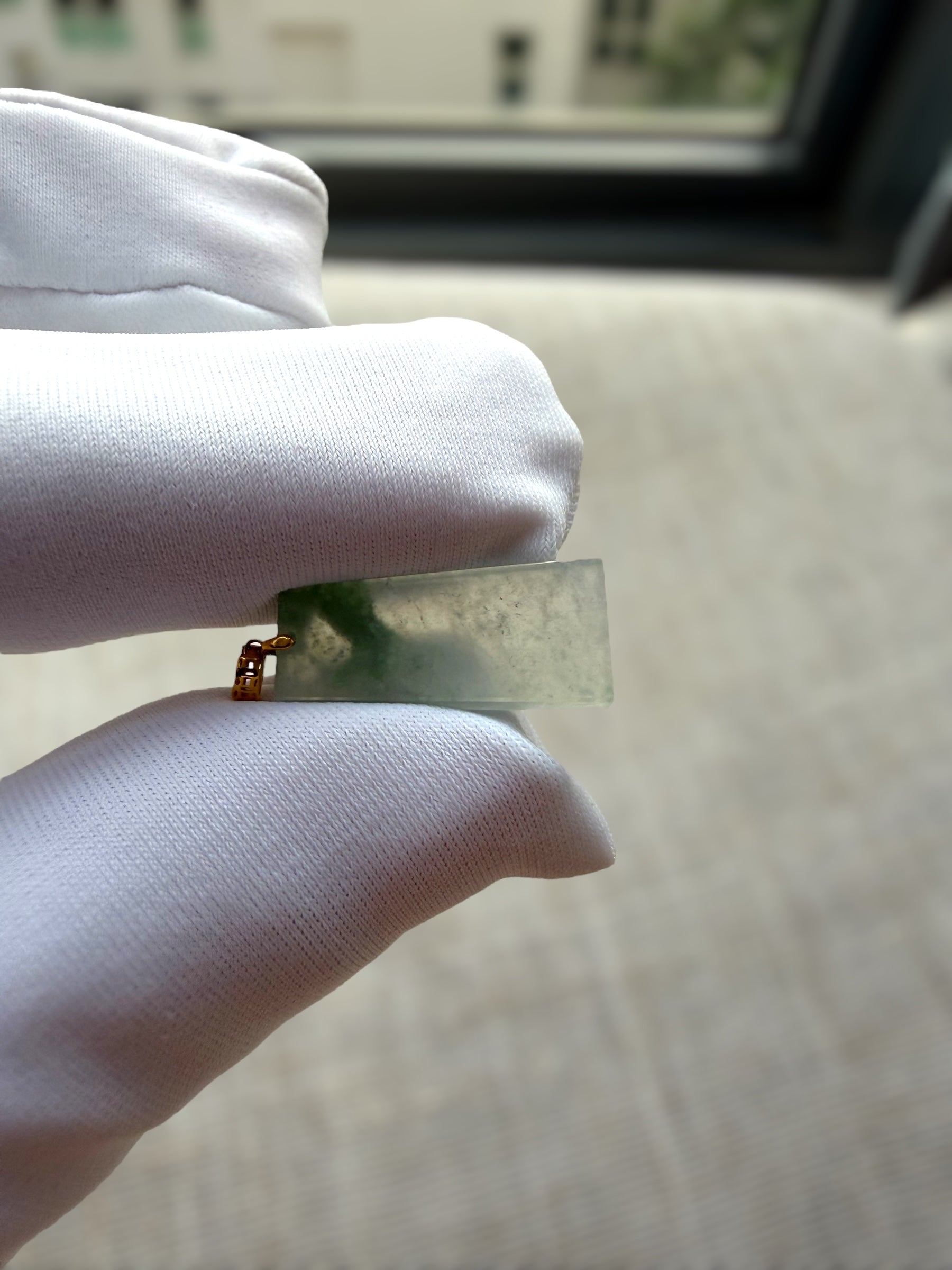 The “Wu Shi Pai” – a smooth uncarved block – It is said to keep the bearer safe and protected against negative vibes. It has the meaning of eventfulness, keeping you safe and bliss. This pendant comes in a nice artistic blend of white hues with green.