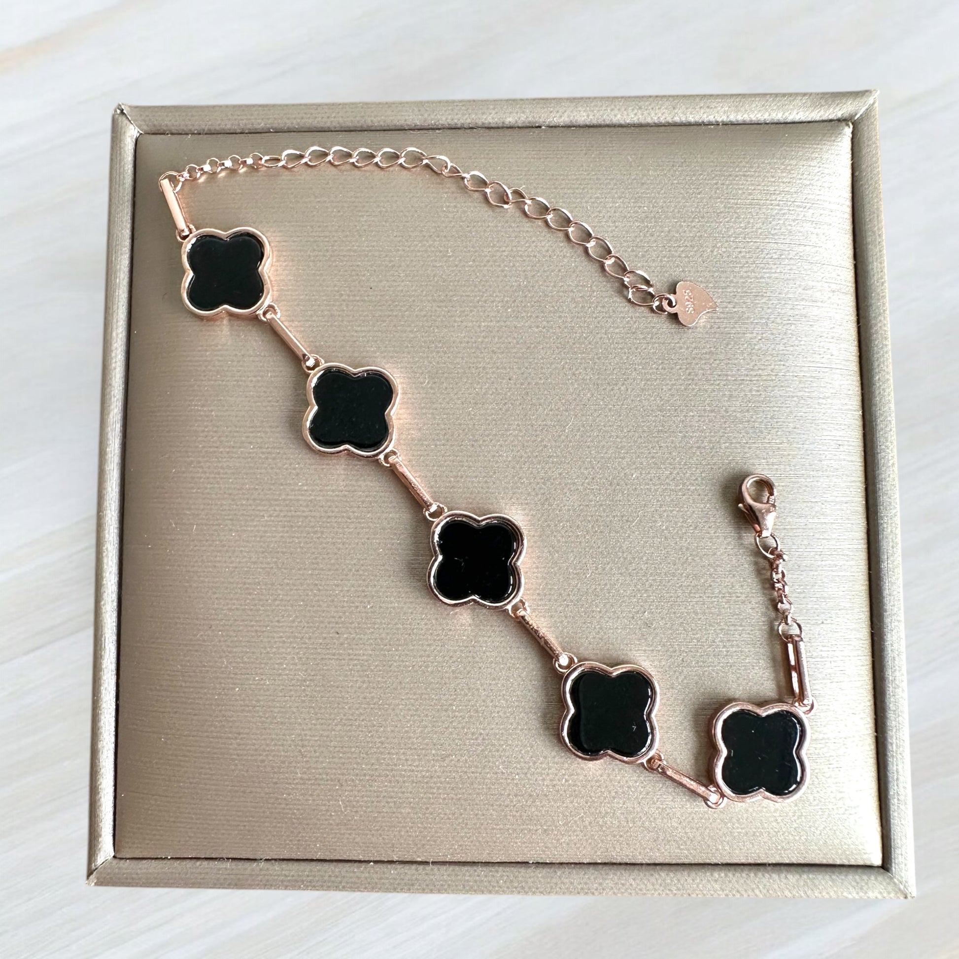 🍀 Crafted with five pieces of clover jadeite charms, this bracelet symbolizes luck, protection, and harmony. A timeless piece blending deep elegance with meaningful tradition.