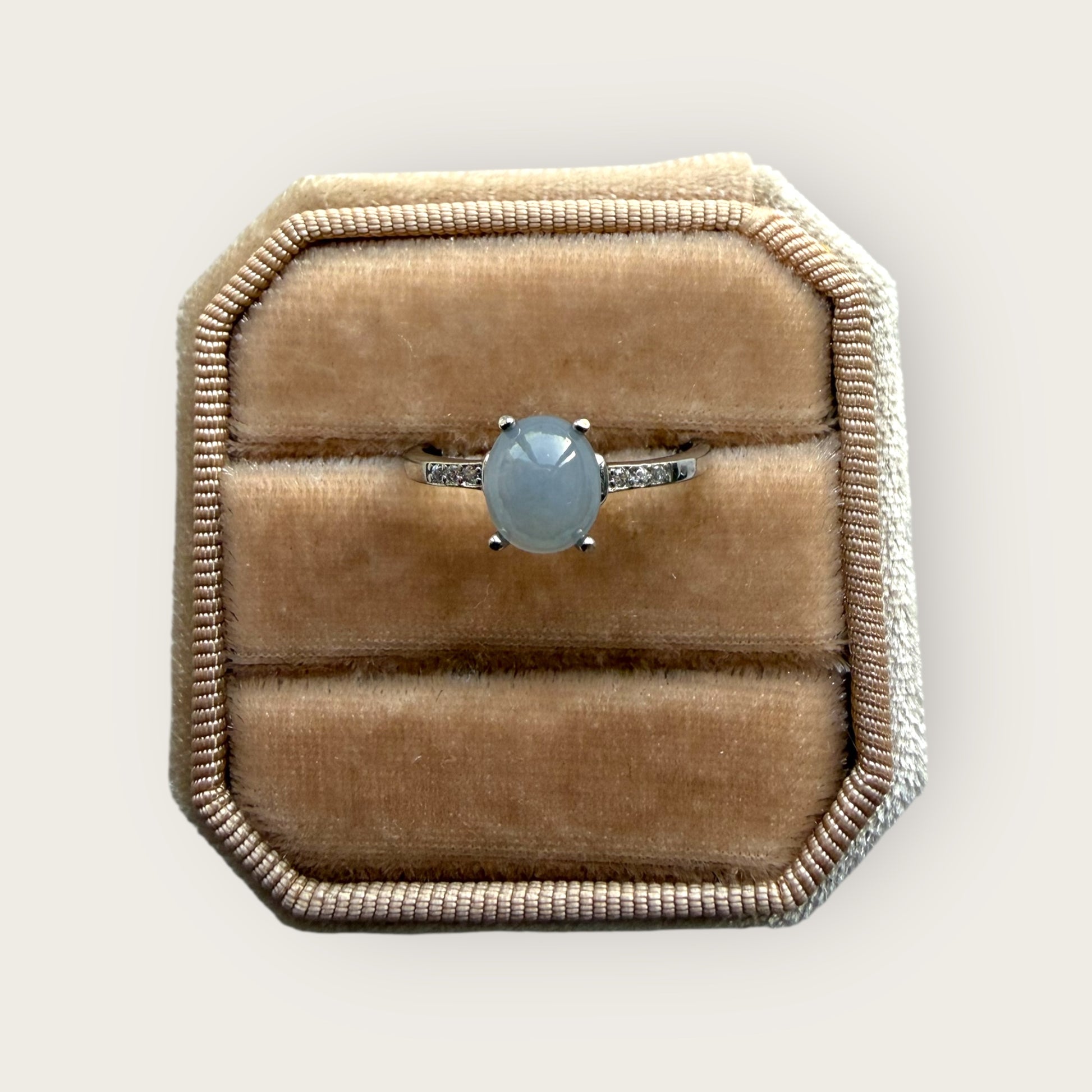 Featuring a smooth, polished jadeite gem in a serene purple tone on simple silver settings - its glossy finish and soothing color exude quiet sophistication, making it a timeless piece of elegance and tranquility.