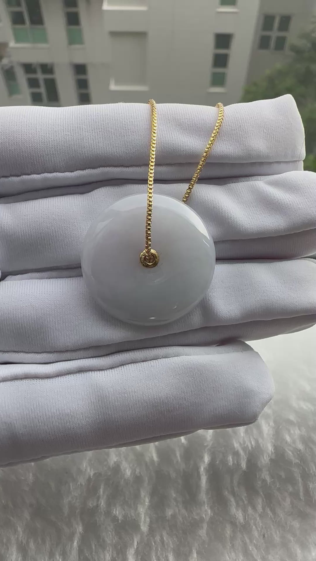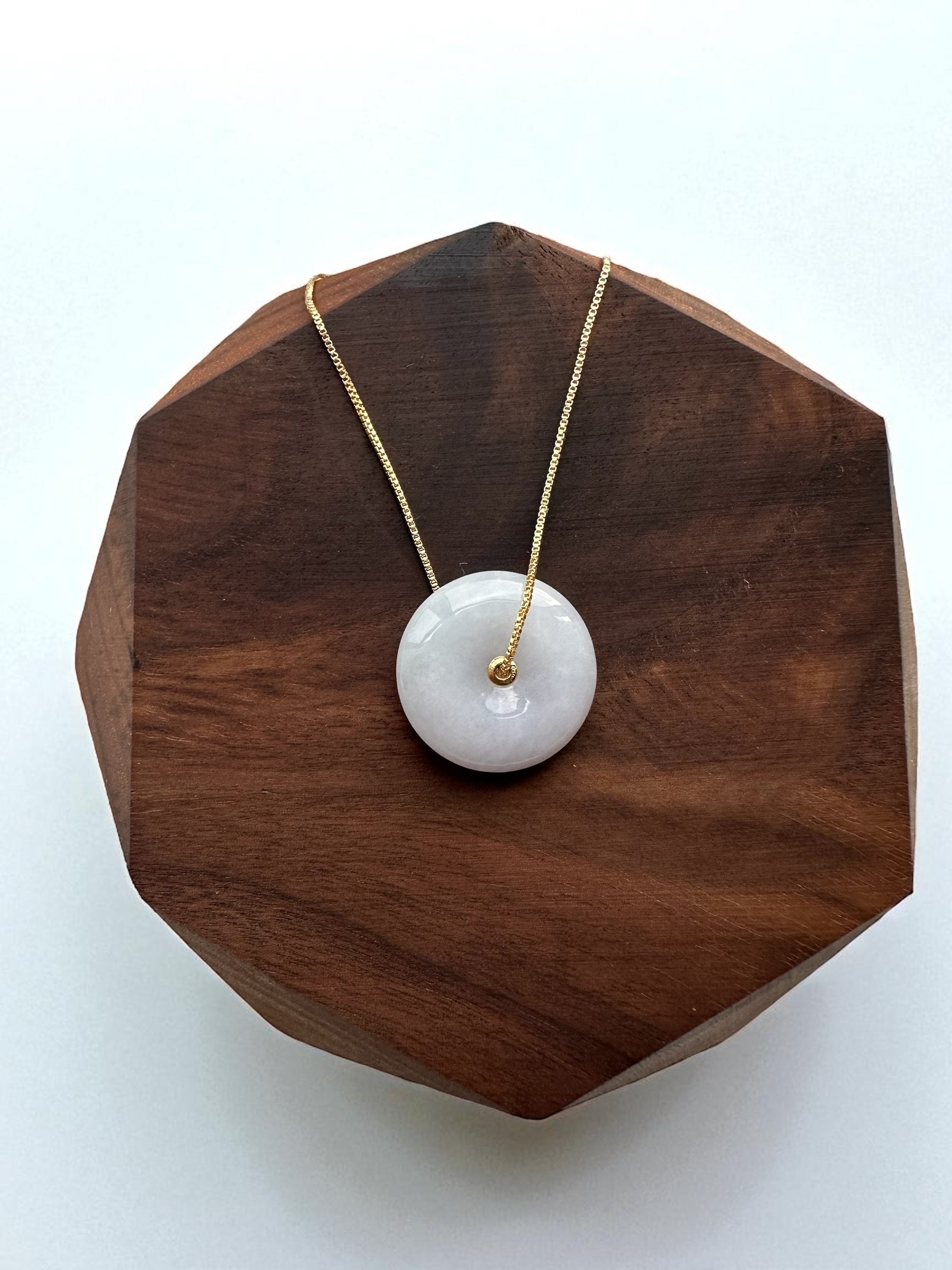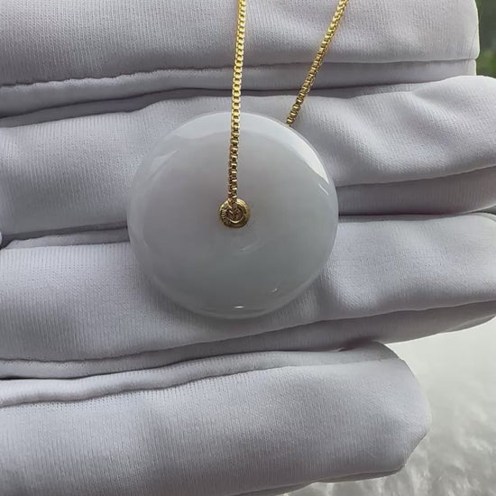 Elegant and timeless, this Purple Jadeite Donut Pendant is designed with a smooth circular silhouette, symbolizing wholeness and harmony. The serene purple tone radiates calmness and balance, while the natural translucency of jadeite enhances its refined charm. Set with an 18K gold inner hook, the design adds a subtle touch of luxury without overshadowing the stone’s natural beauty.