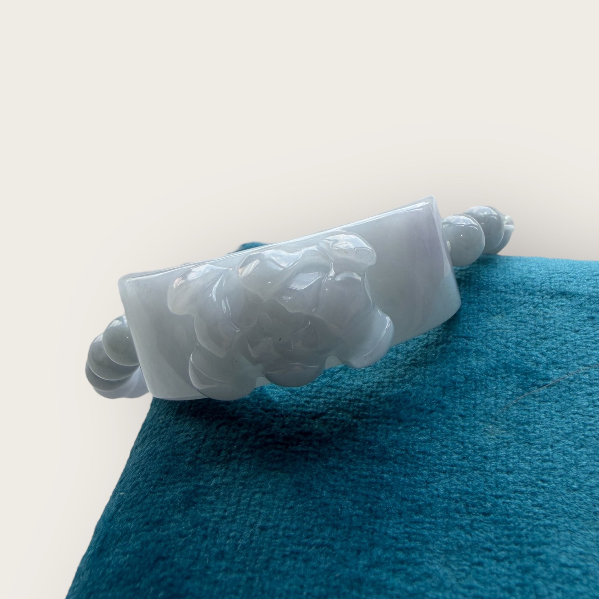 Embodies tranquility and renewal. Featuring soothing purple jadeite beads inspired by the lotus flower, it symbolizes purity, growth, and inner peace. A graceful piece that adds a serene touch of elegance to your everyday wear.