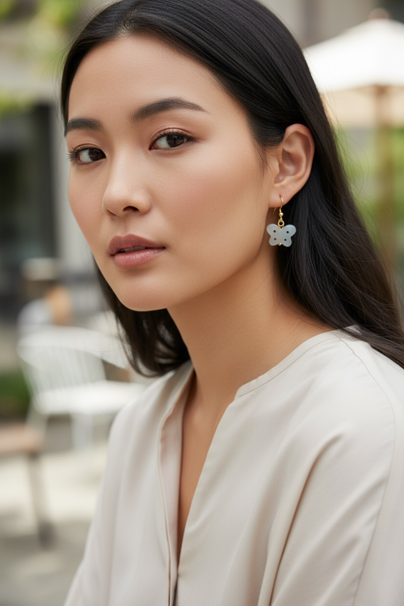 Delicate and graceful, these pieces capture the essence of elegance in motion. Handcrafted with luminous white jadeite, the butterfly design symbolizes transformation and lightness of being - a gentle reminder to embrace change beautifully.