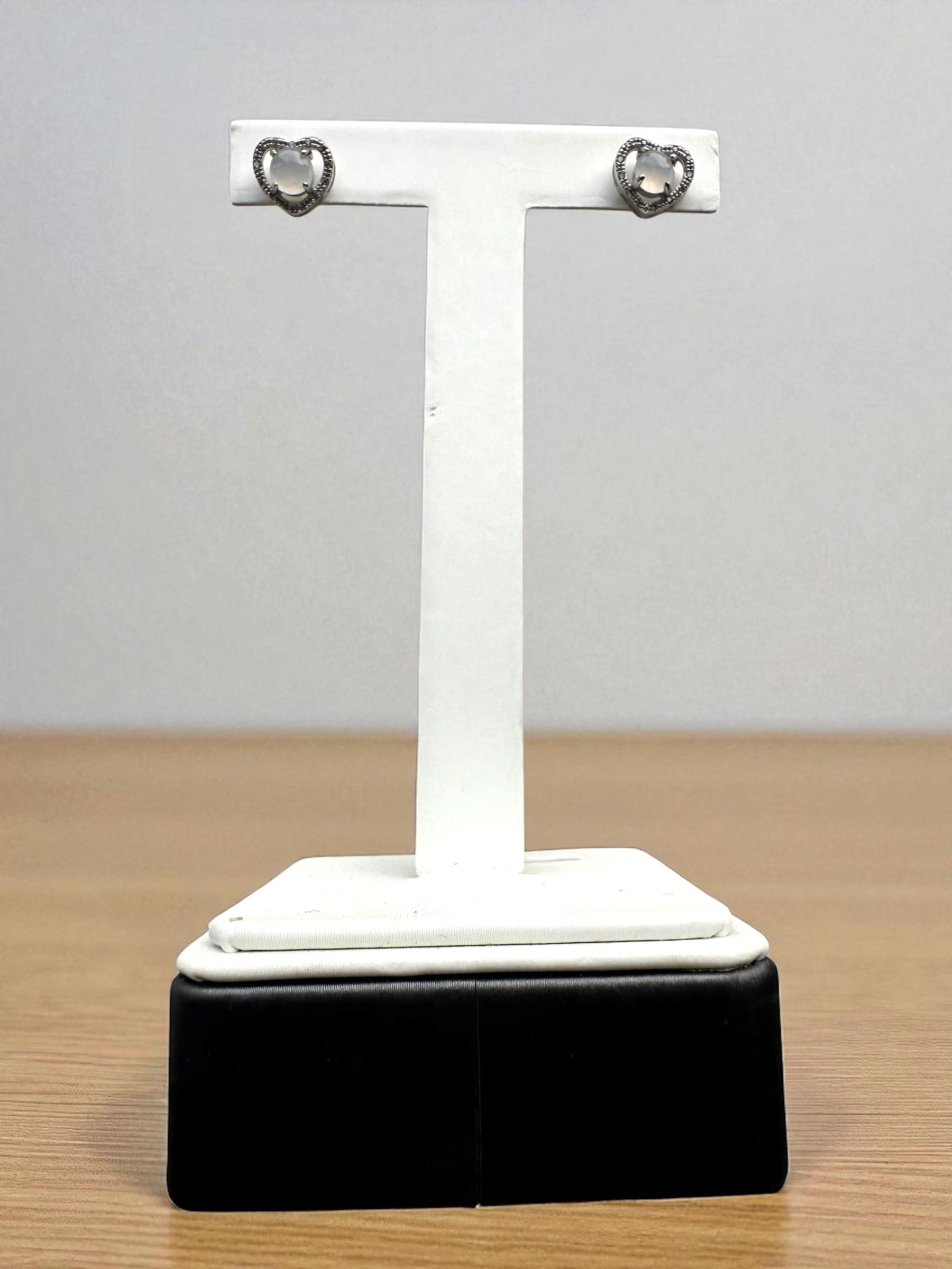 - Romantic and timeless, these studs showcase natural white jadeite carefully shaped into delicate hearts. With their soft, luminous glow, they symbolize purity, love, and harmony; making them a meaningful piece for everyday wear or special occasions.