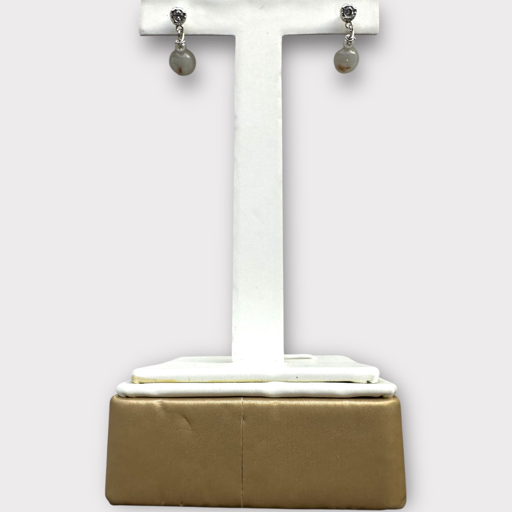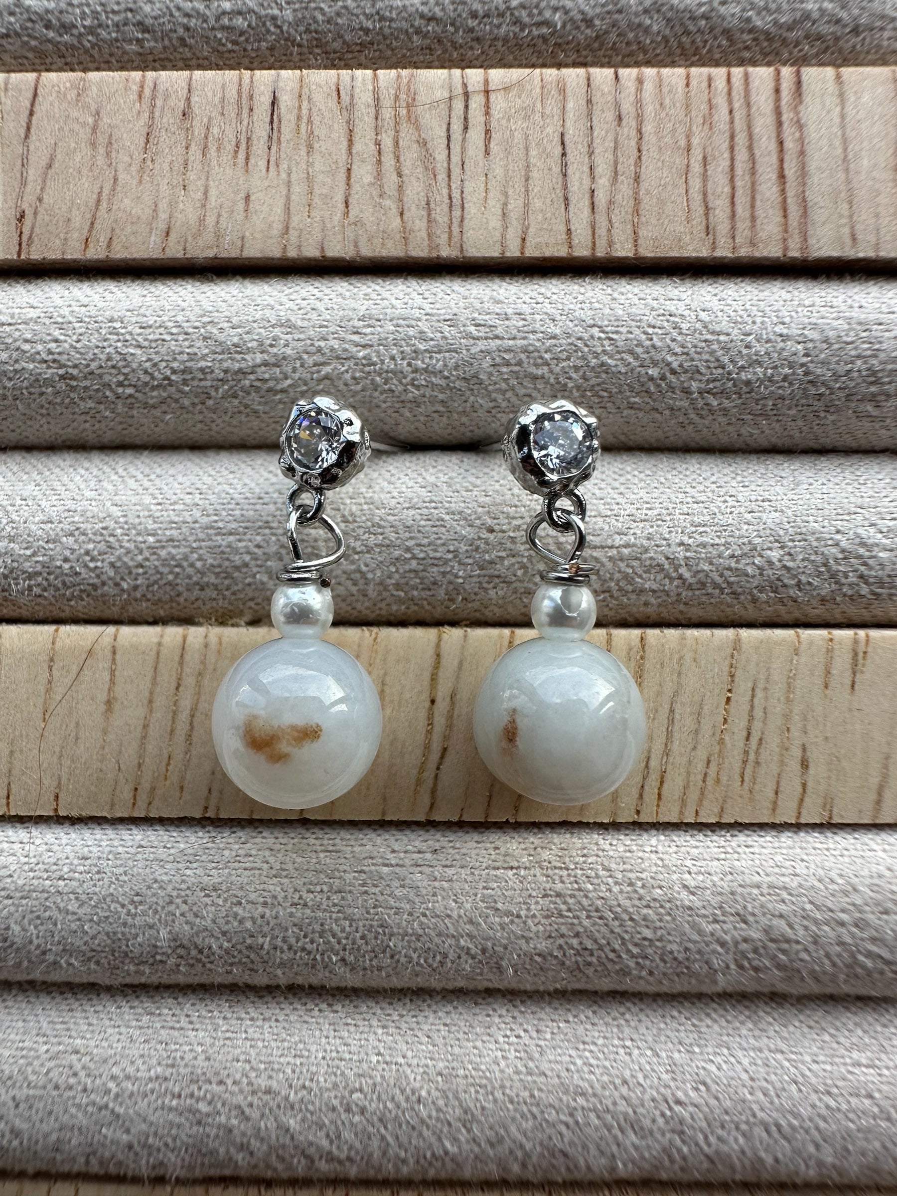 Symbolizes purity, peace, and calmness, these earrings feature white jadeite beads with a hint of red jadeite in a timeless silver setting. Perfect for daily wear or special occasions, they bring natural beauty and positive energy to any look.