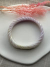 A graceful blend of texture and elegance, features soft pleated lines that catch the light with every movement. Comes with a splash of purple, its unique oval shape offers a refined, comfortable fit, while the jadeite’s natural glow adds a touch of timeless beauty. ✨