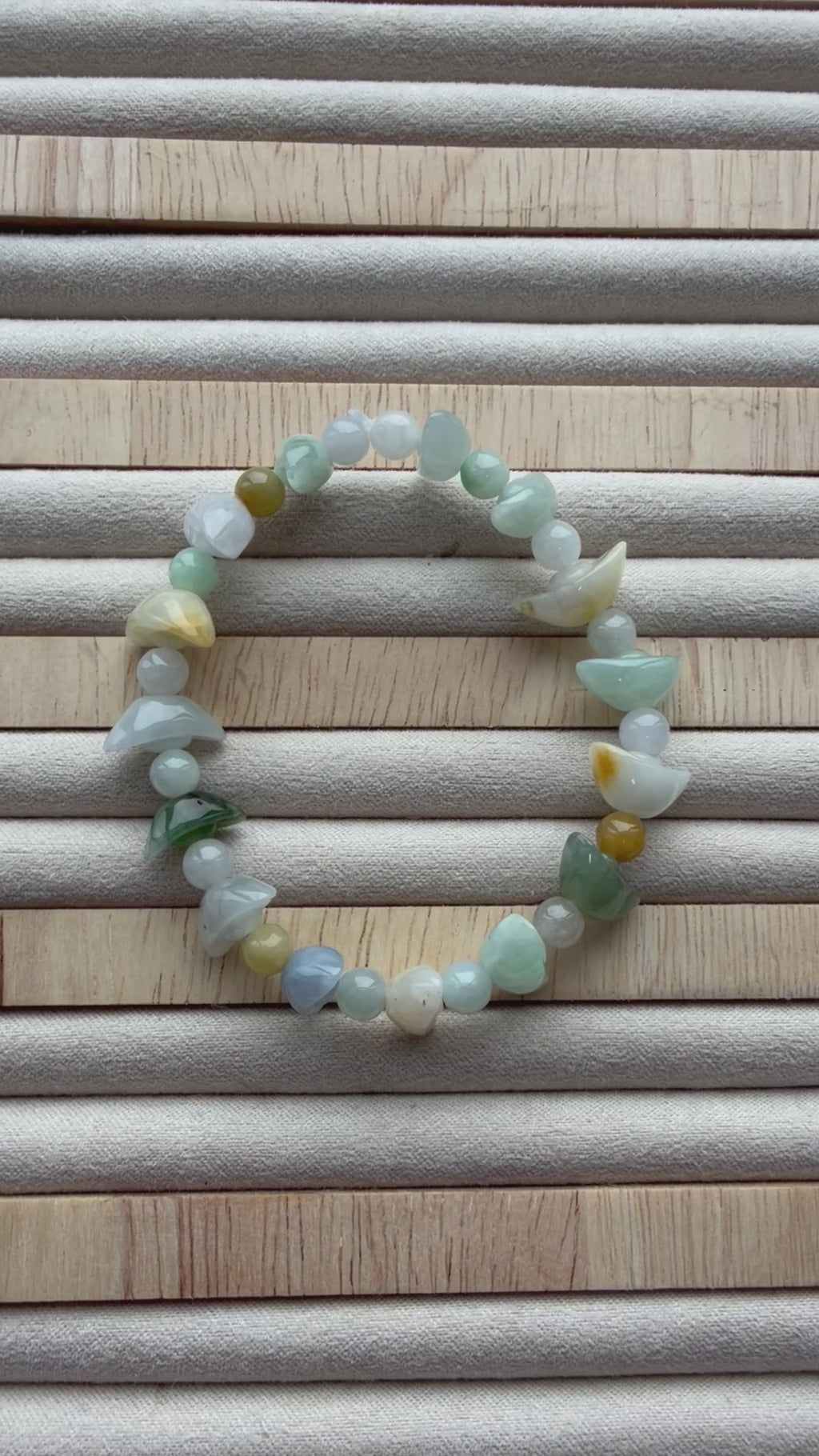 A symbol of prosperity and good fortune, this bracelet features an alternate mix of jadeite beads and ingot jadeite, believed to attract wealth and success.