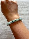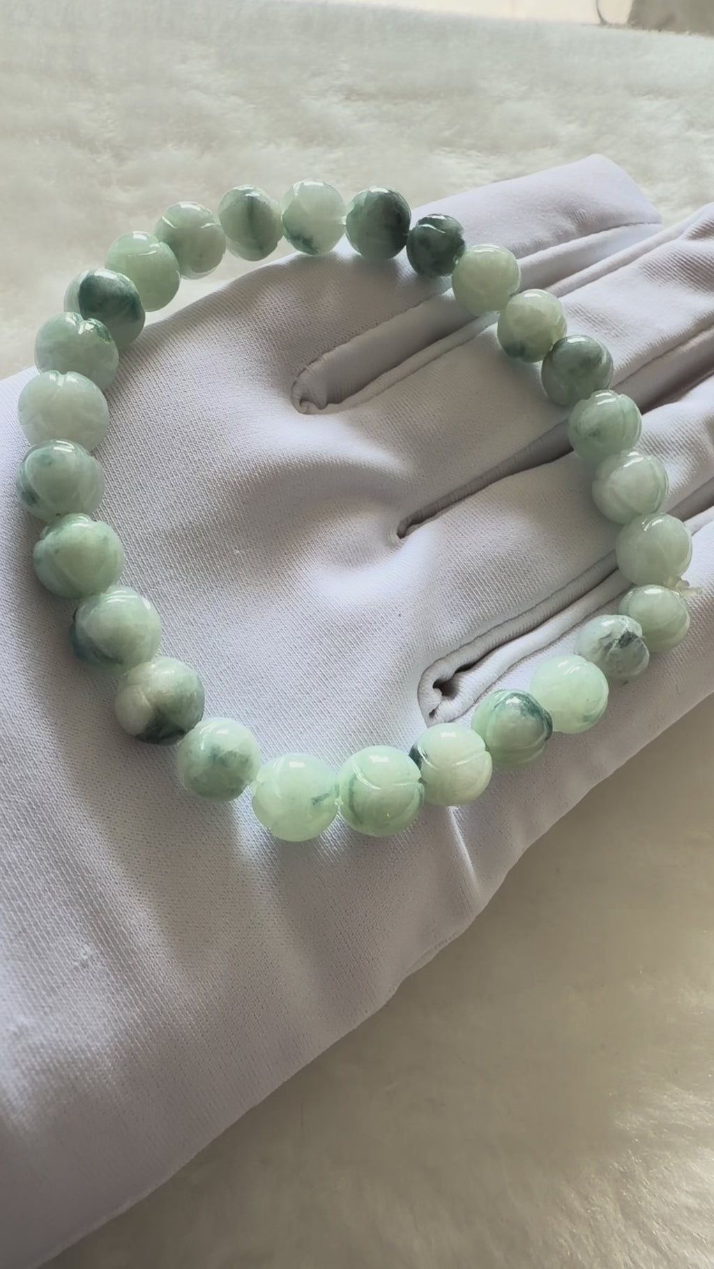 A graceful blend of rarity and symbolism, the Blue Piaohua Lotus Flower Jadeite Bead Bracelet features natural jadeite beads with soft blue “piaohua” (floating flower) patterns. Paired with a delicate lotus charm, it represents purity, serenity, and quiet strength. The cool blue tones add a calming, elegant touch, perfect for everyday wear or thoughtful gifting.