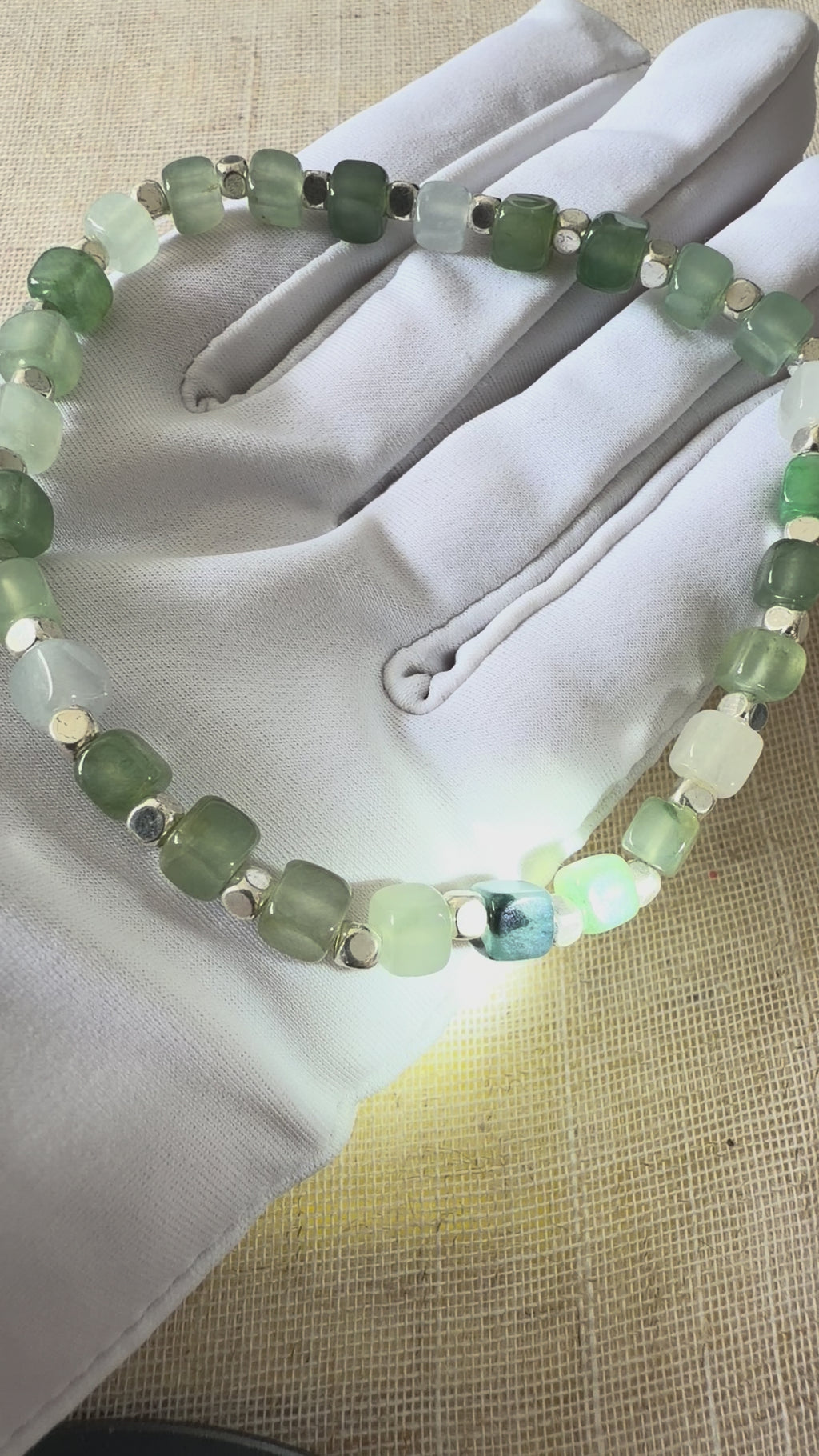 A modern take on a classic, featuring natural jadeite beads shaped into clean, geometric cubes. The structured form symbolises stability, balance, and grounded energy.
