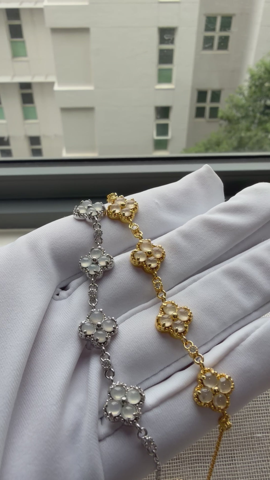 Radiant and charming — this Glowy Clover Jadeite Bracelet shines with a touch of luck and elegance. Featuring a luminous jade clover set in sleek silver or gold tones, it’s a delicate symbol of positivity and grace for any occasion. 🍀✨