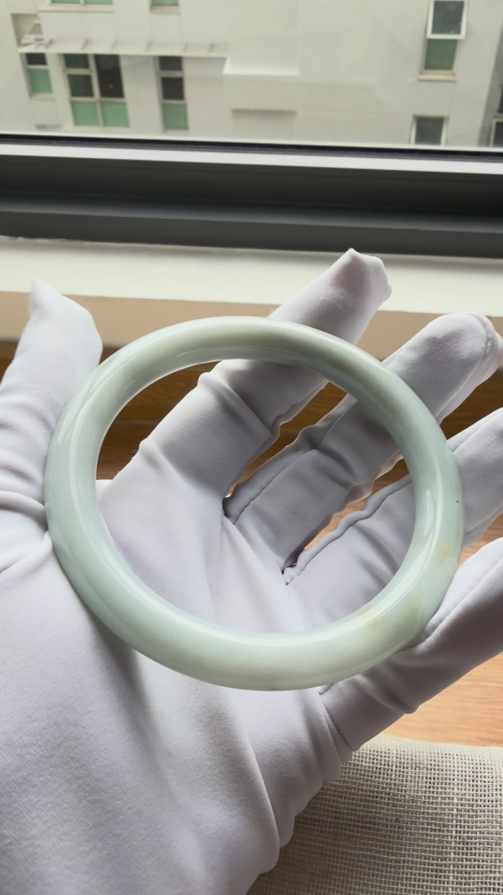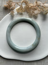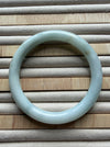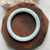 A smooth round green jade bangle in a soft, calming shade—classic, polished, and easy to wear daily. Comes with a splash of orange specks for uniqueness.